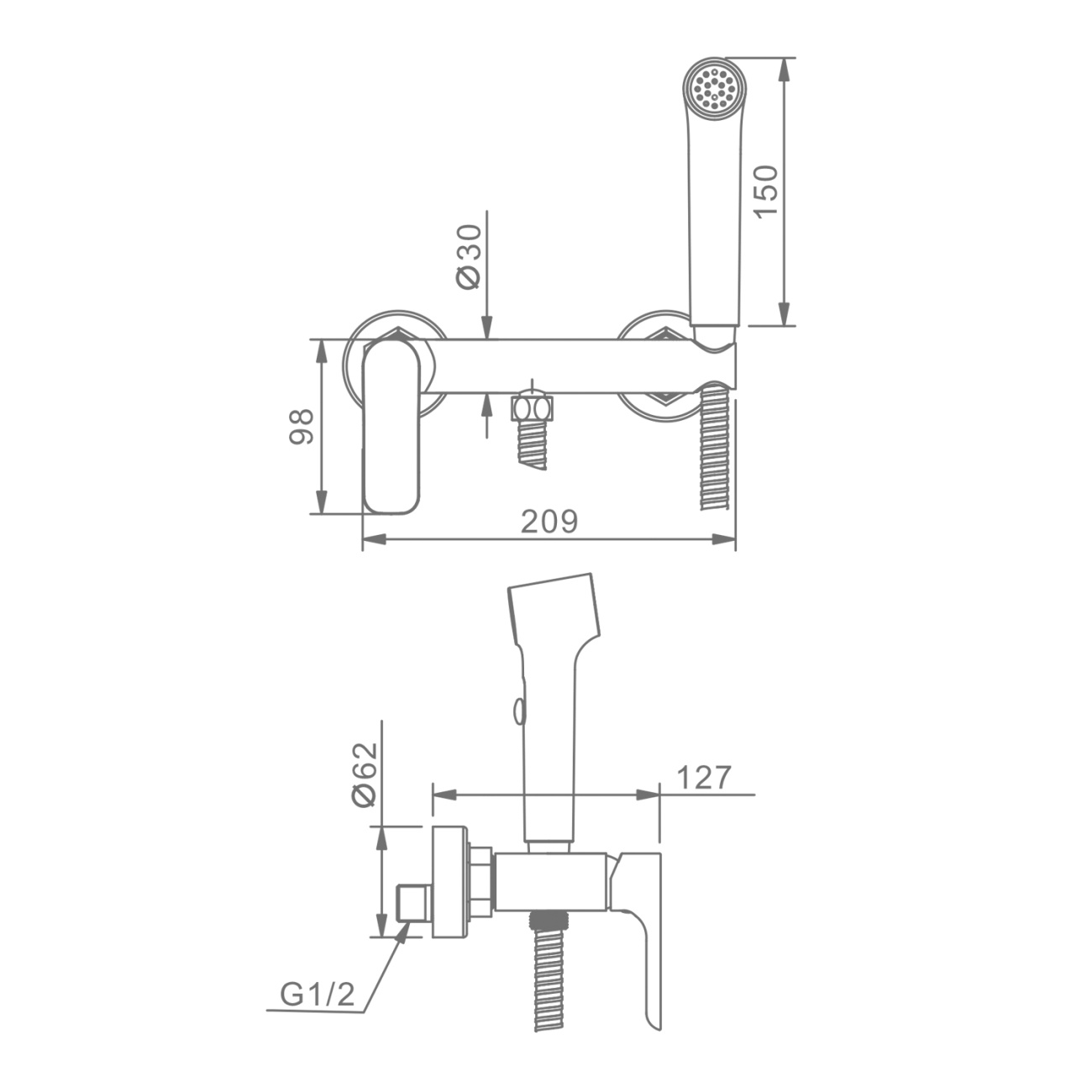 Смеситель настенный с гигиеническим душем, хром Raglo, R03.51