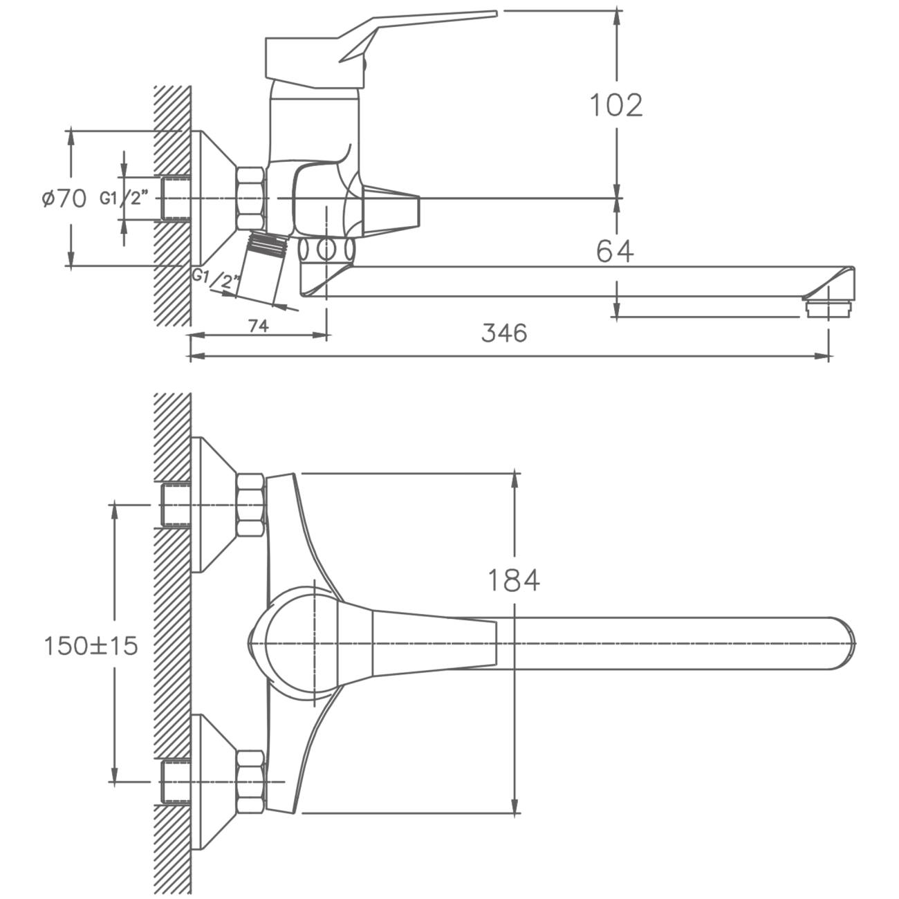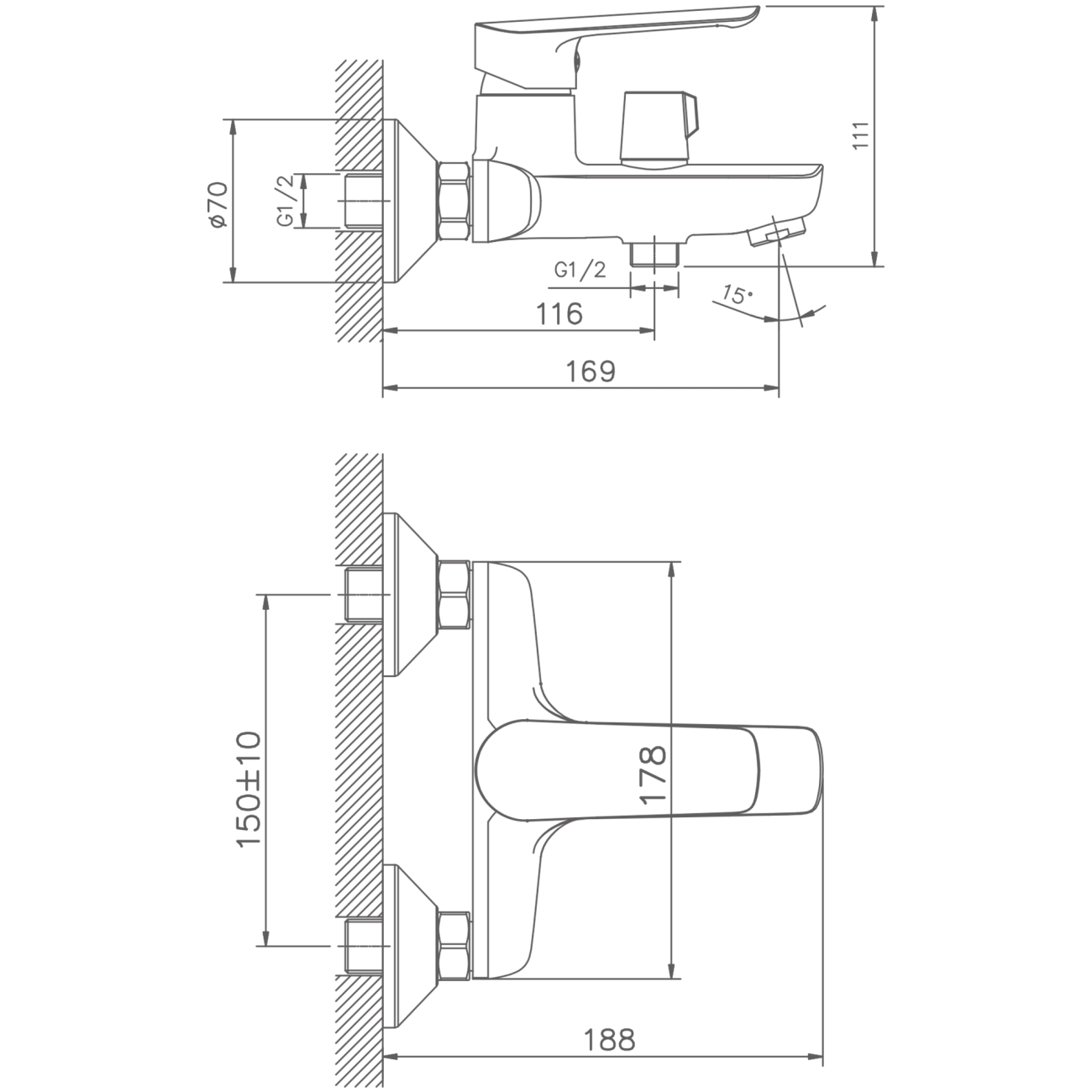 HB60198 Смеситель для ванны с коротким изливом