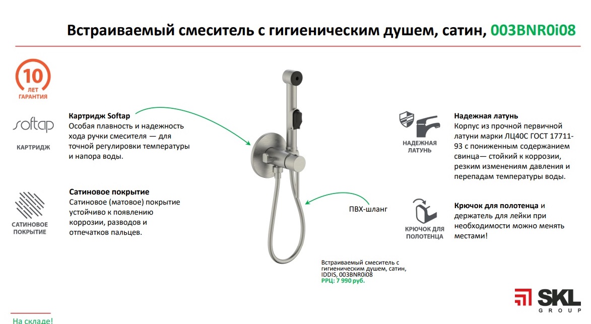 Встраиваемый смеситель с гигиеническим душем, сатин, IDDIS, 003BNR0i08