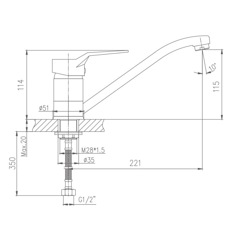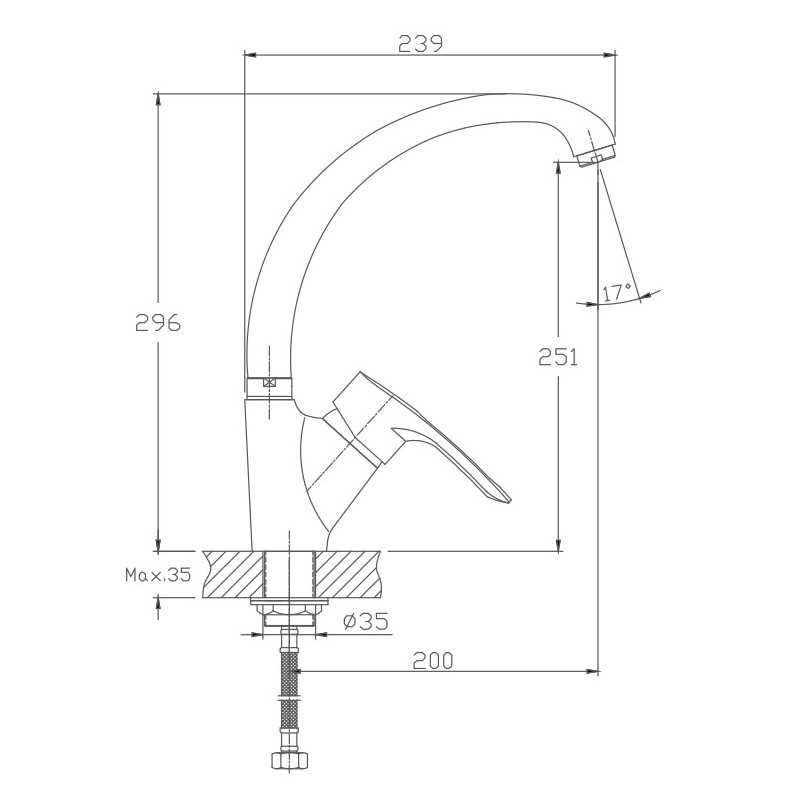 HB4963 Смеситель для кухни с гайкой, хром