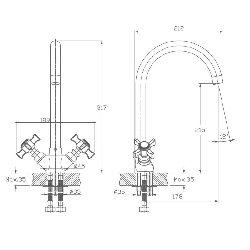 HB4924 Смеситель для кухни с гайкой, хром