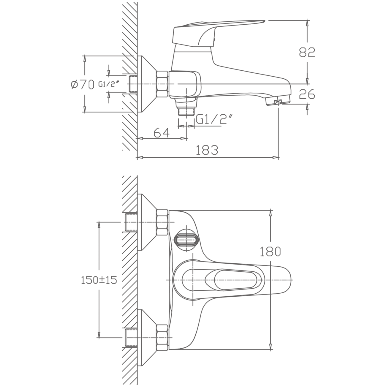 HB4603 Смеситель для ванны, хром (без душа)