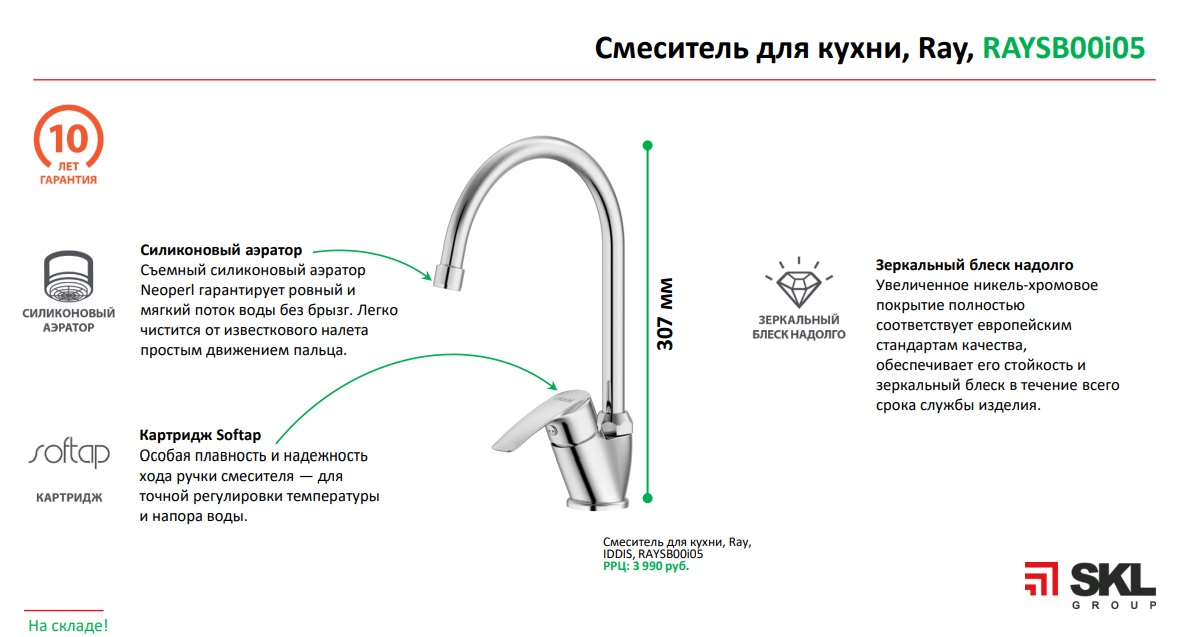 Смеситель для кухни, Ray, IDDIS, RAYSB00i05
