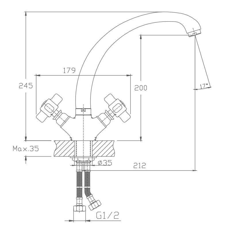 HB4504-2 Смеситель для раковины/кухни с гайкой, хром