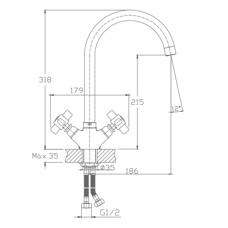 HB4218 Смеситель для кухни с керамической ручкой с гайкой, хром