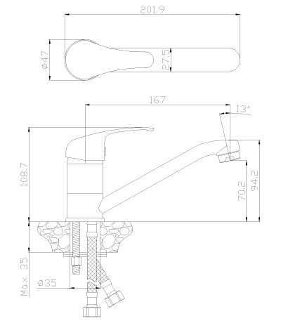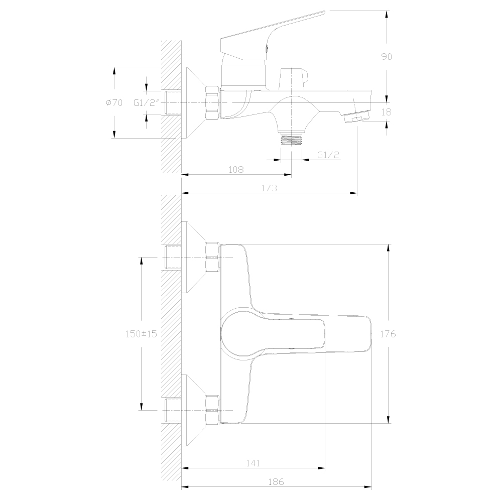 Y35-41 Смеситель одноручный (35 мм) для душа, хром