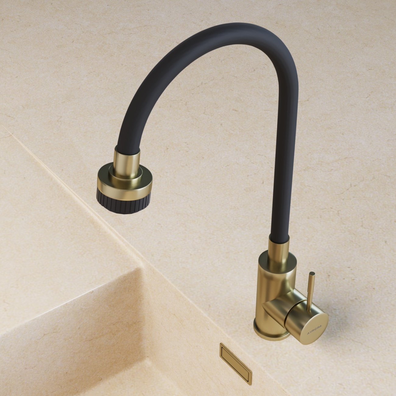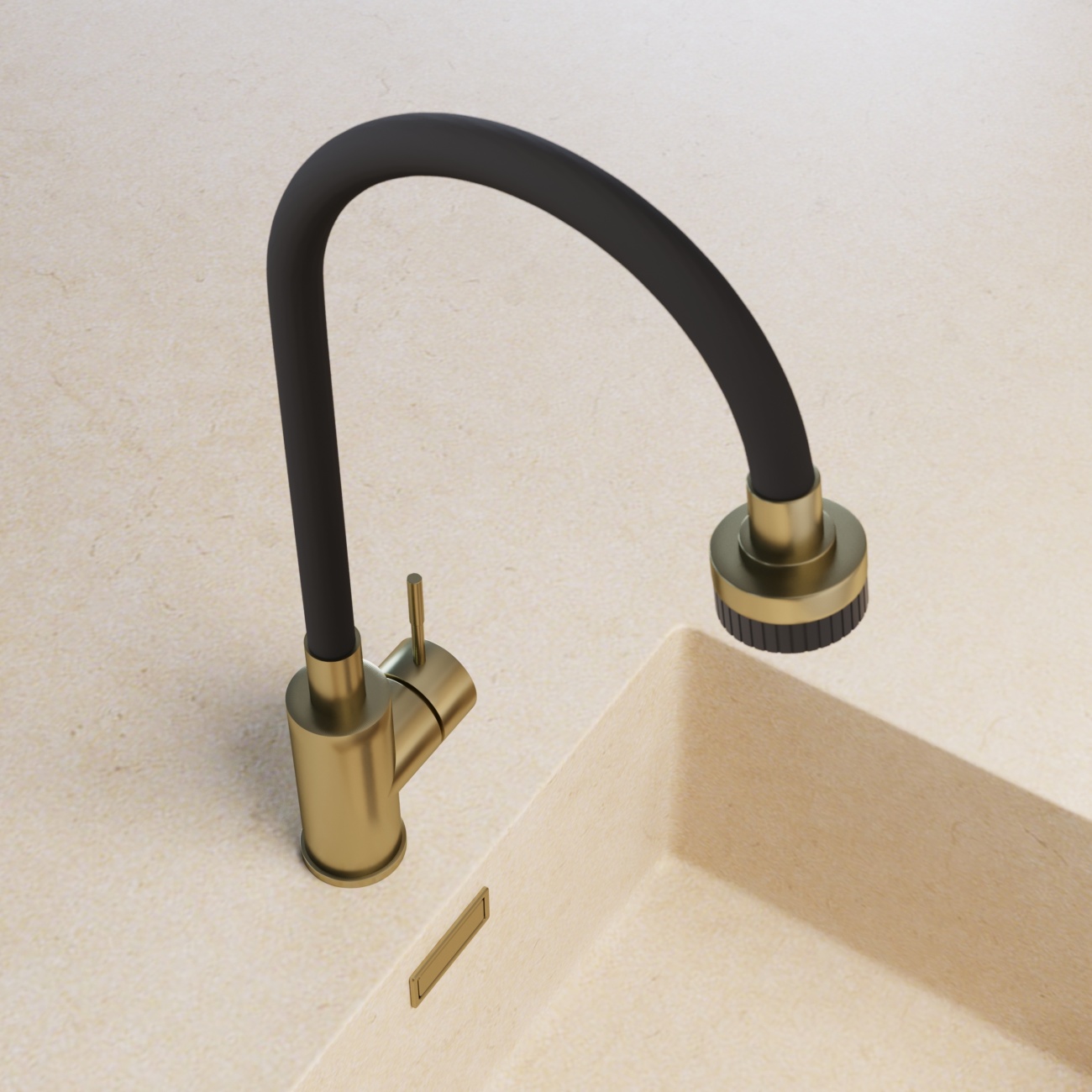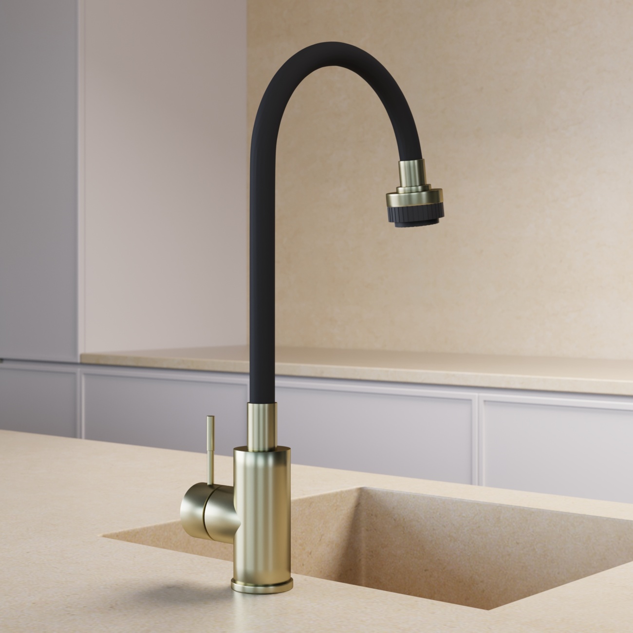 Смеситель для кухни KITCHEN AV9001B с гибким изливом, цвет чёрный