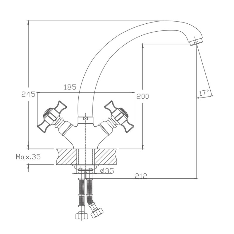 HB4099 Смеситель для кухни двуручковый с гайкой, хром
