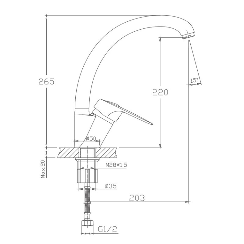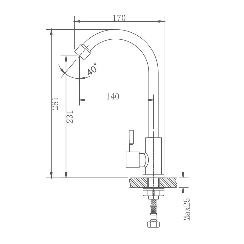 HB4183 Смеситель моно,под одну воду для кухни (нержавейка) гайка