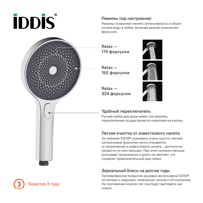 Лейка для душа, хром, SpaHome, IDDIS, SPA3F0Ci18
