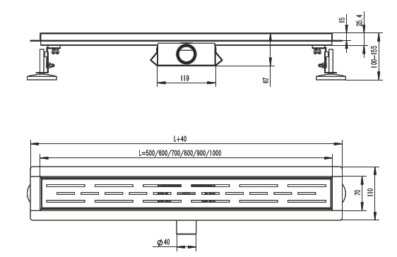 Трап для душа 70*700мм(поворот.сифон 360°), R651.70.05