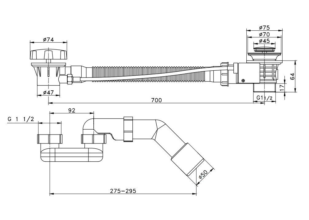 Сифон для ванны полуавтомат Raglo, R600.30.03