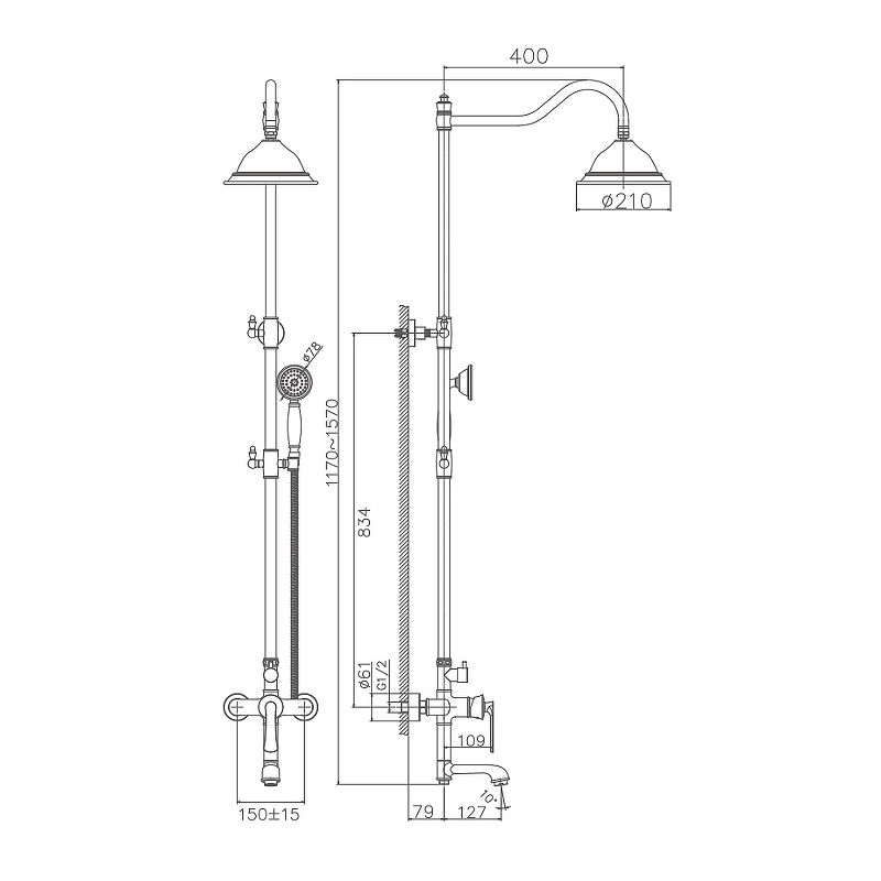 HB6070 Смеситель для ванны с переключателем в корпусе, хром
