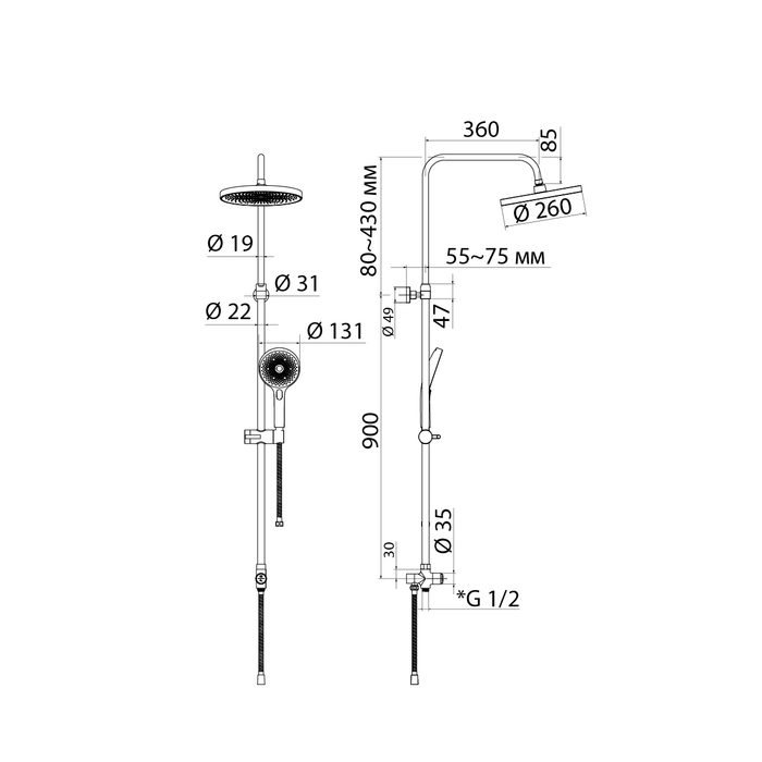 Душевой гарнитур с верхней лейкой, SpaHome, IDDIS, SPA3F0Ci76