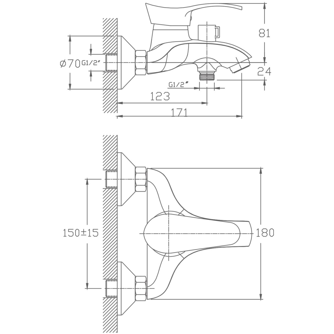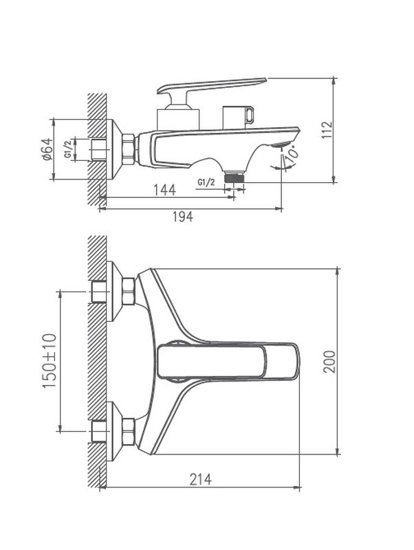 HB6001 Смеситель для ванны с коротким изливом, хром