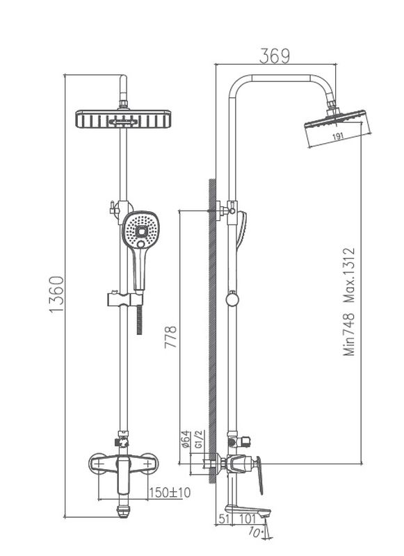 HB60548-8 смеситель для ванны, белый/хром