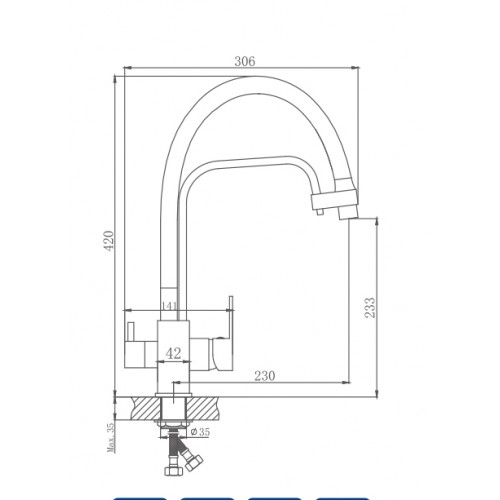HB30F Плоский излив 30 см "F" форма