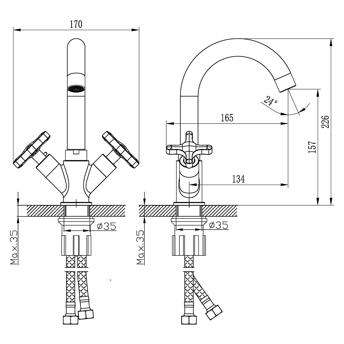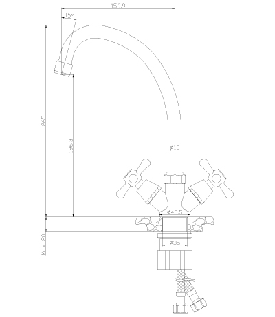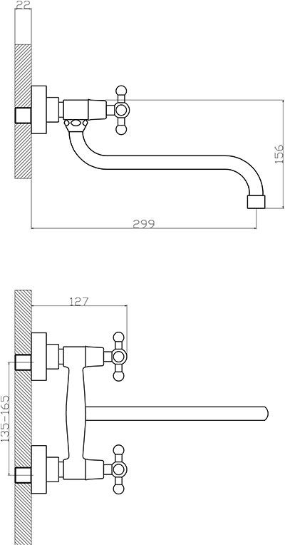 G02-74 Смеситель для кухни настенный, с нижним изливом, хром
