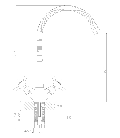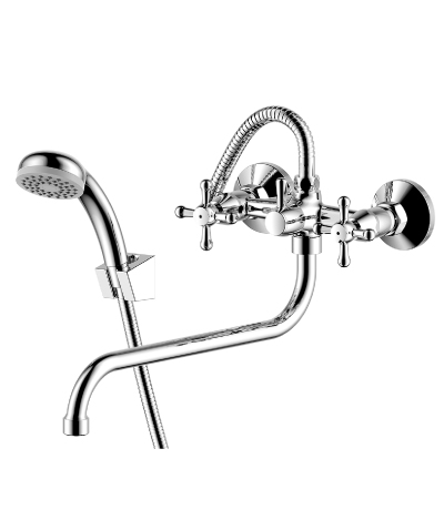 Q02-75 Смеситель для кухни двуручный с гибким изливом, хром