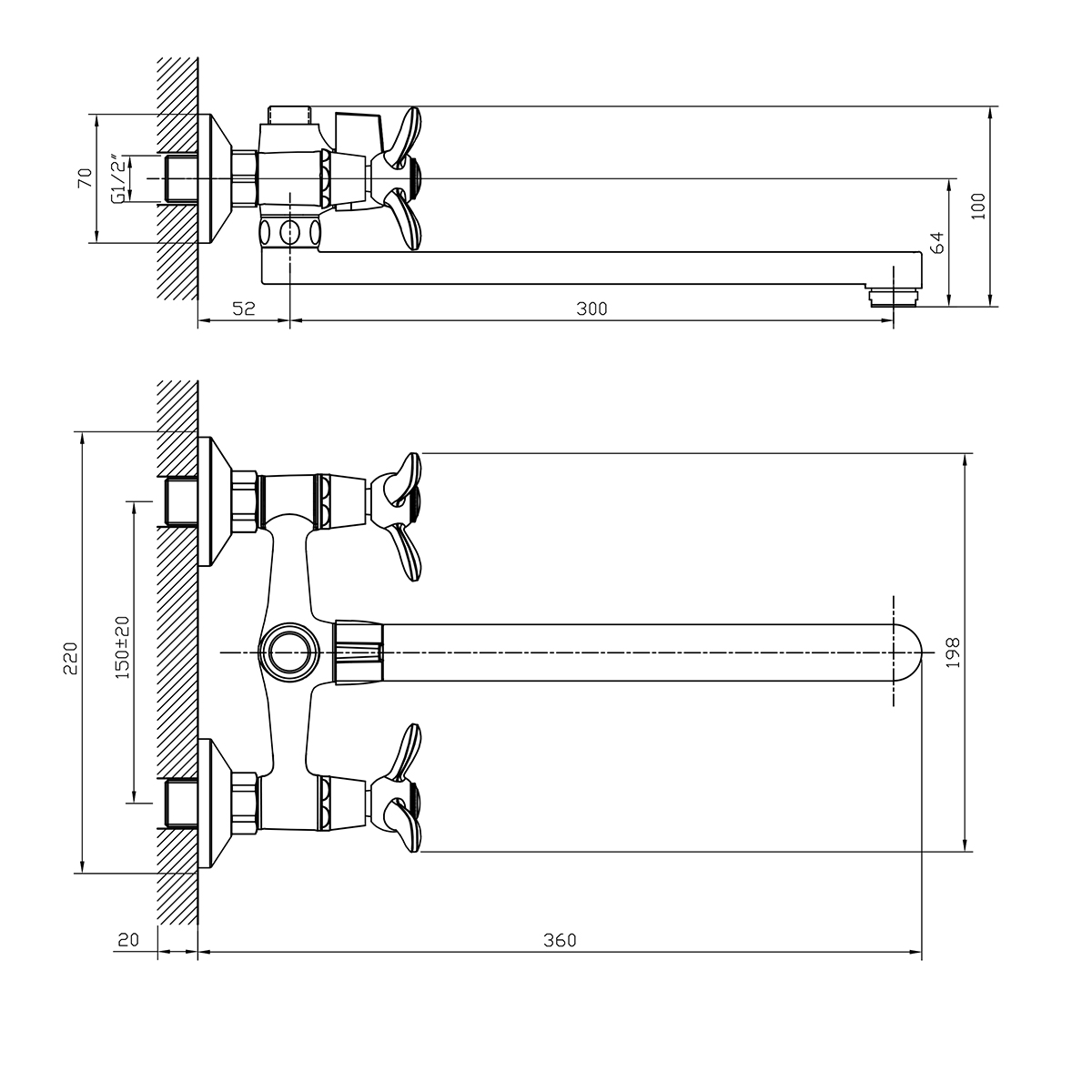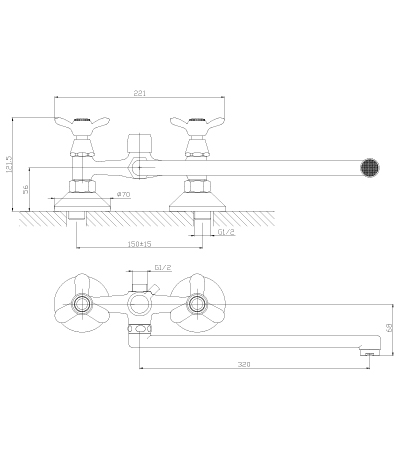 Y02-82 Смеситель универсальный с круглым изливом 310 мм, хром