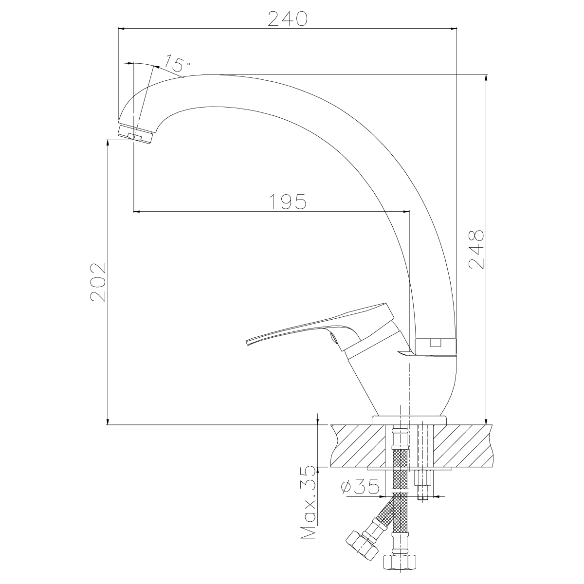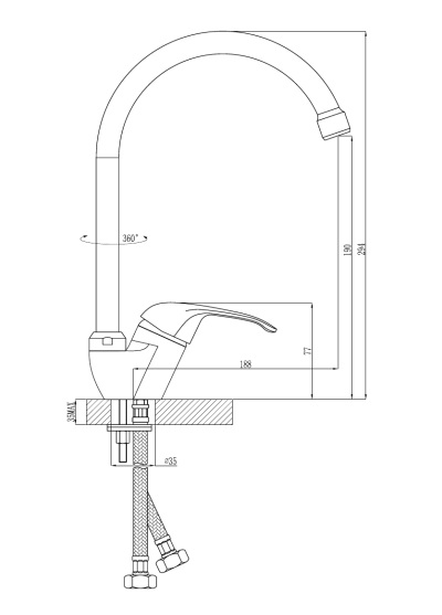 B35-21 (В35-21U) Смеситель для кухни с поворотным изливом 250 мм, хром