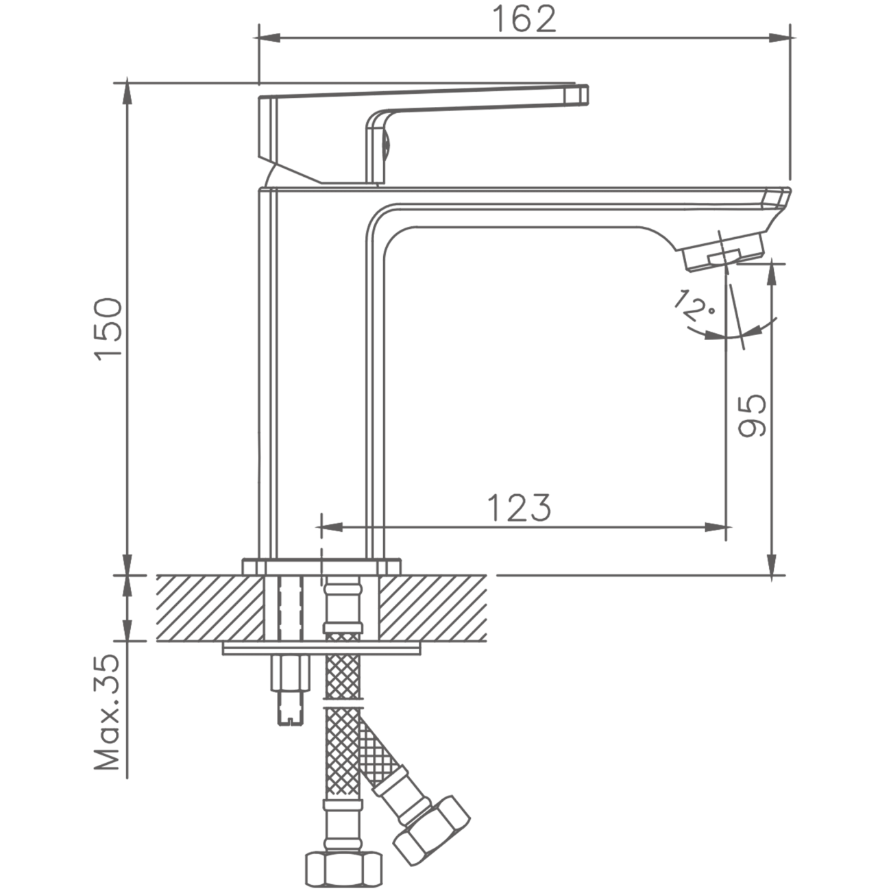 HB11590-7 Однорычажный смеситель для раковины d35 латунь черный