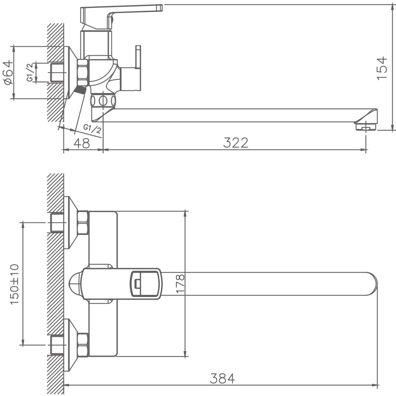 HB10176 Смеситель для раковины с гайкой, хром