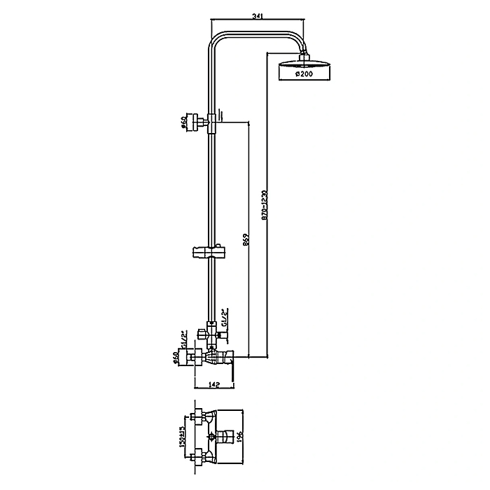 HB2411 Смеситель для душа с верхней тропической лейкой