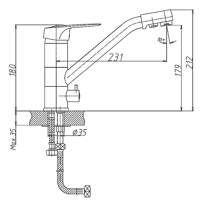 HB73801 Отдельный корпус для кухонного смесителя с гайкой, нерж.