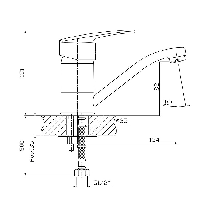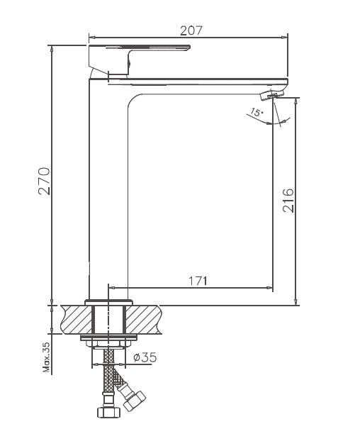 HB10590-7 Смеситель для раковины однорычажный, d35, латунь, черный