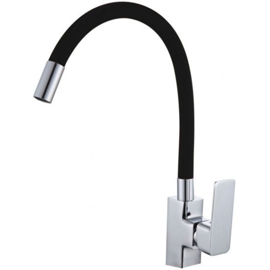 A5501-1 Смеситель для кухни с силиконовым изливом, черный/хром