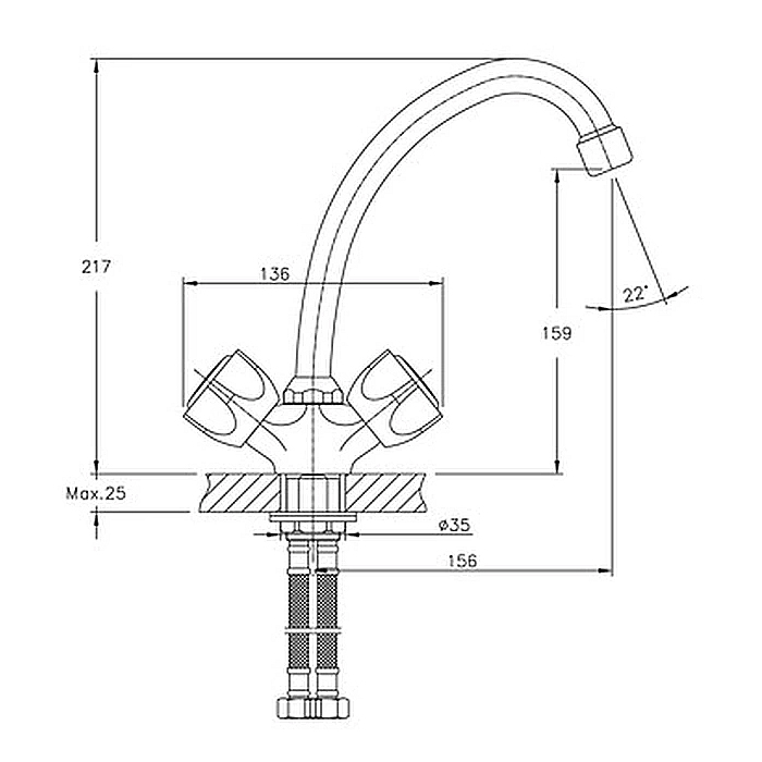 HB70590-7 Смеситель для кухни, d35, латунь, черный