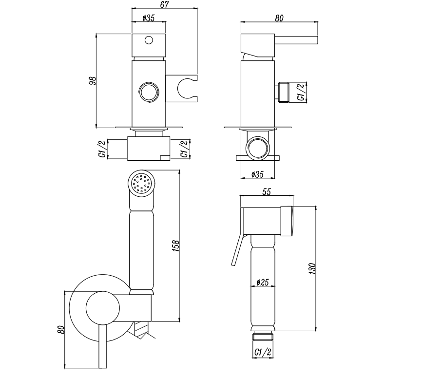 Смеситель гигиенический MOON AV3504C, цвет хром