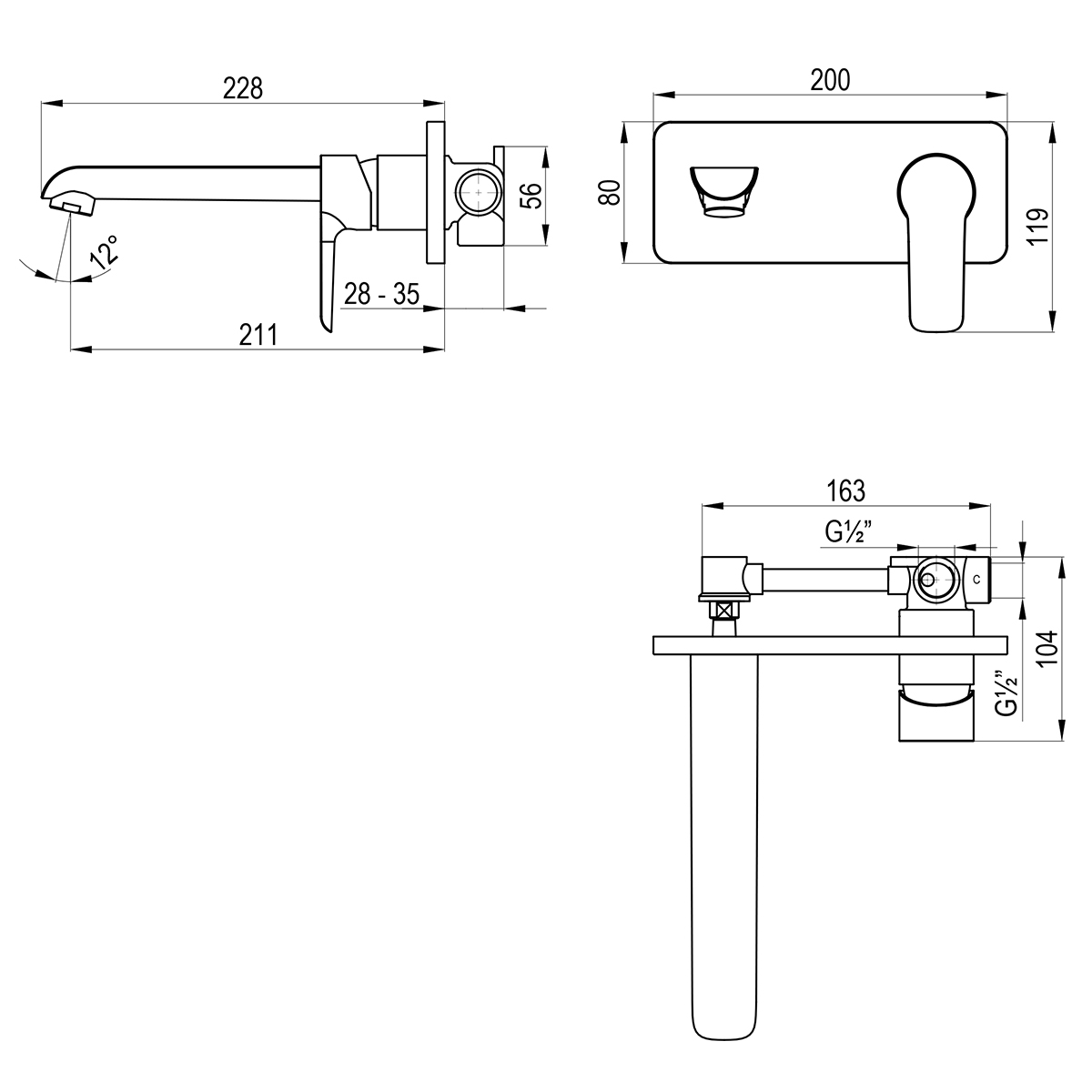 W35-16 Смеситель для раковины, встраиваемый, хром/белый