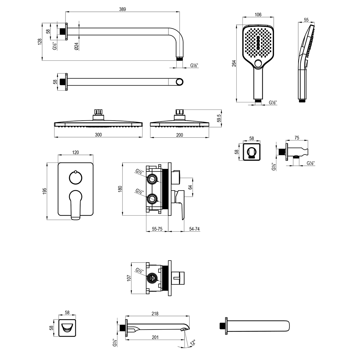 W35-55 Смеситель для ванны и душа, встраиваемый, хром/белый