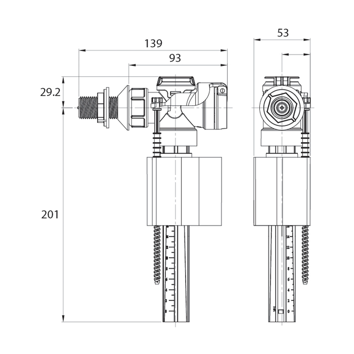 Арматура смывная, 1-ур, боковой подвод, тип А, IDDIS, F012400-0005