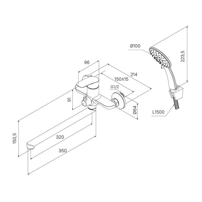 Смеситель для ванны, Nelson, Milardo, NELSB00M02