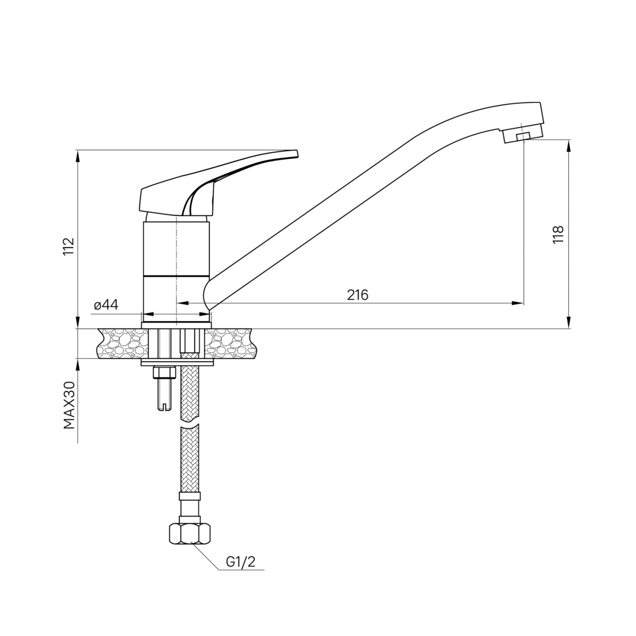 Смеситель для настольного умывальника, сатин, Maze, Milardo, MAZBN01M01