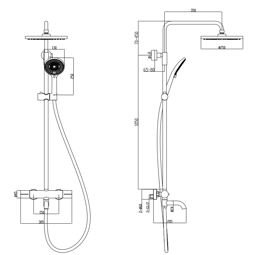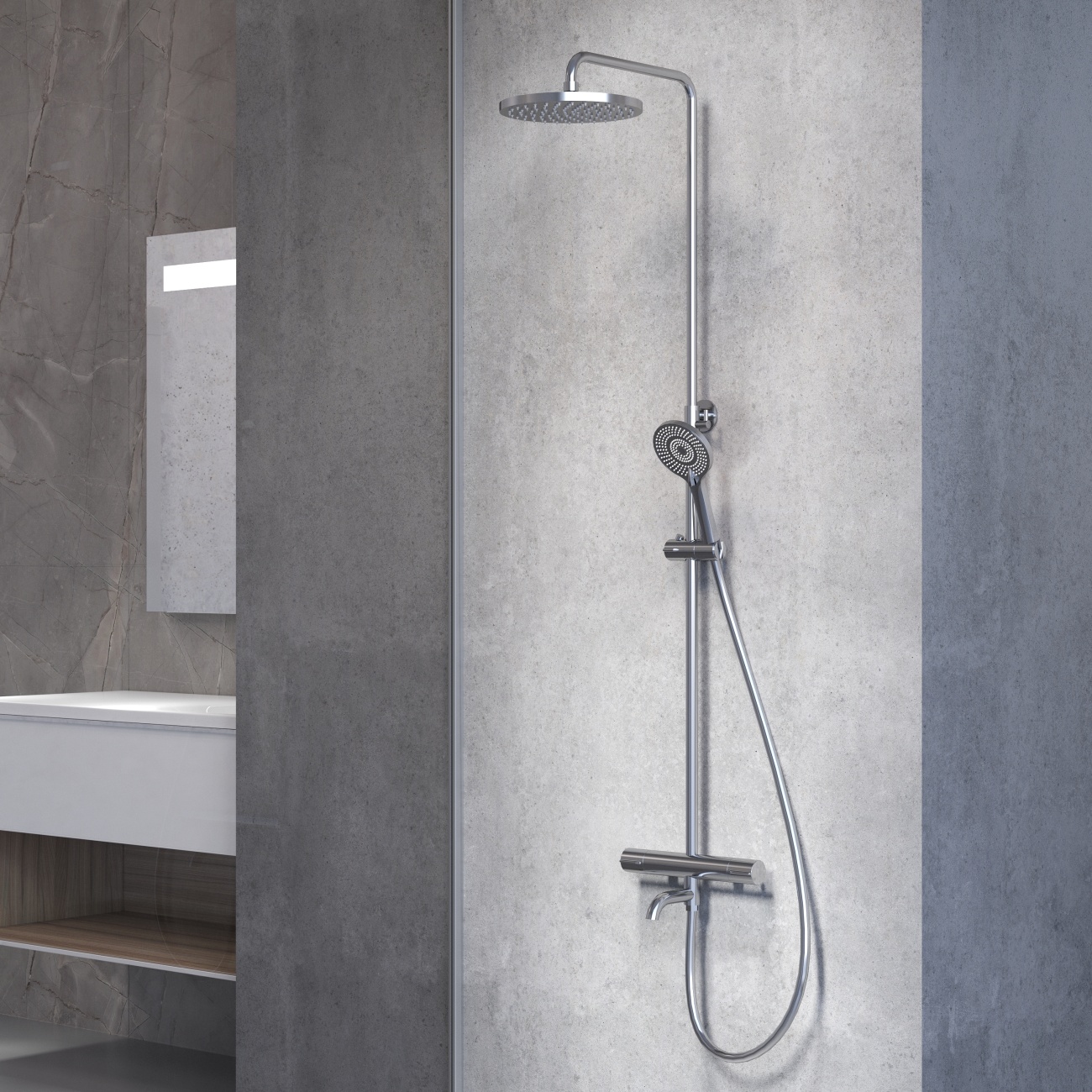 Душевая система для ванны с термостатом TORA AV7140, цвет хром