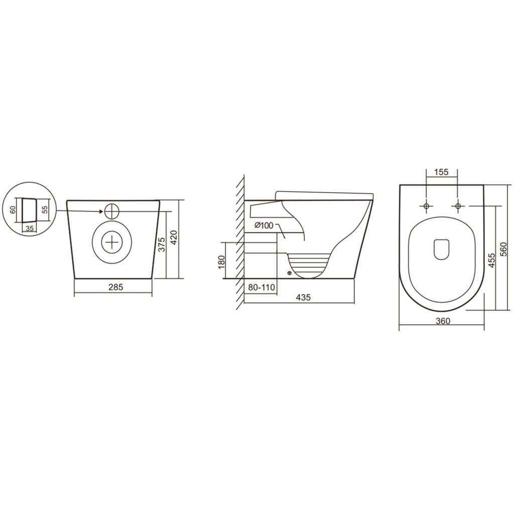 Унитаз подвесной белый IBERICA BLANCA, BILBAO MINI Tornado, IB.BLM.234.1B1
