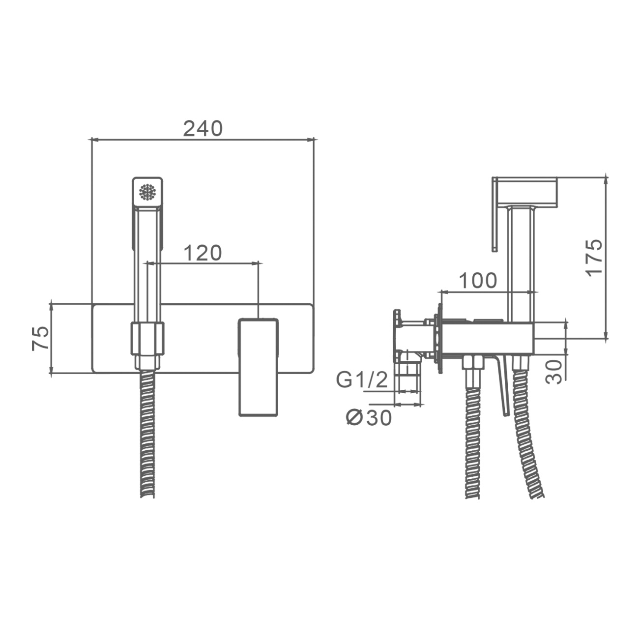 Смеситель настенный с гигиеническим душем, серый Splenka, S99.51.07