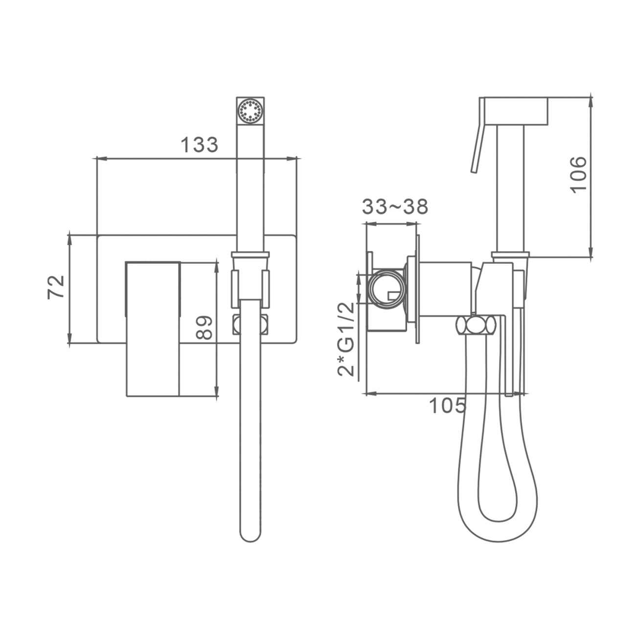 Смеситель встраиваемый с гигиеническим душем, хром Splenka, S97.52