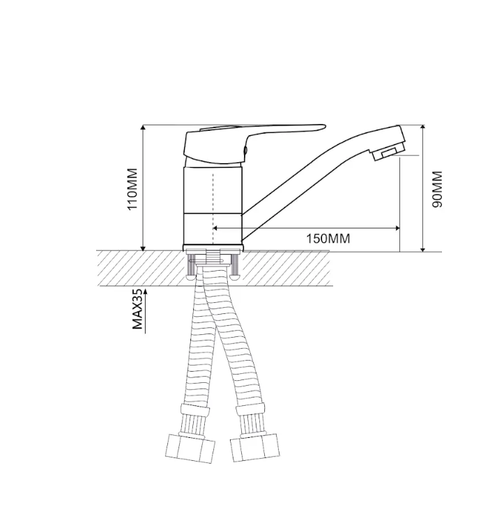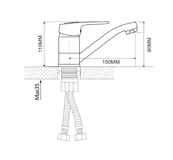 A5040-T Смеситель для кухни с гибким изливом, с гайкой, хром