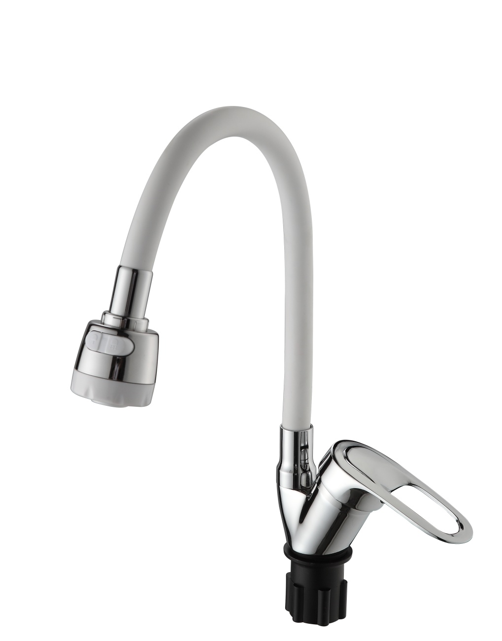 A5040-C Смеситель для кухни с силиконовым изливом, с гайкой, белый