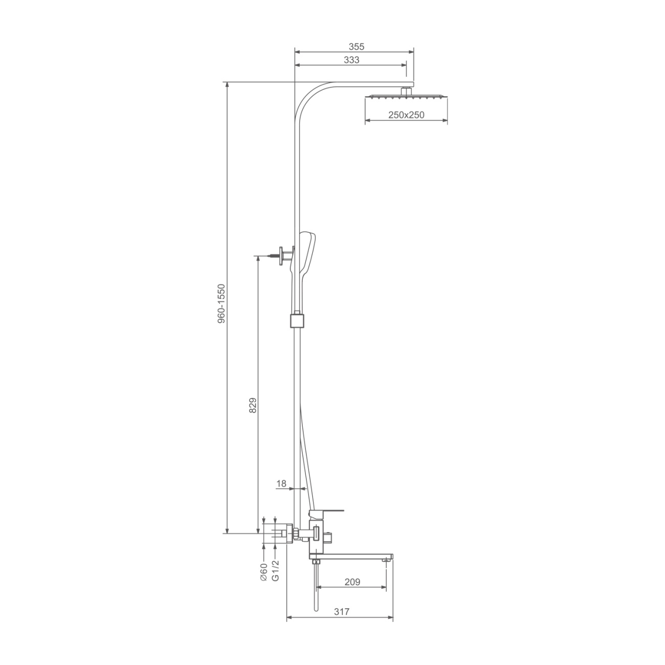 Душевая система для ванны и душа, графит Prohanss P31.24.09