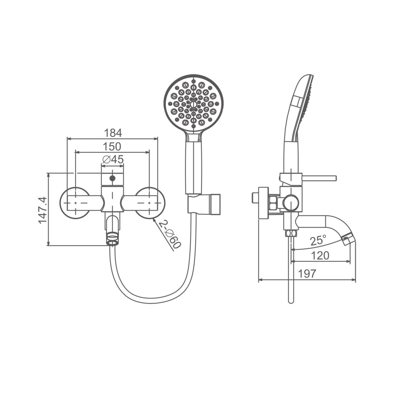 Душевая система для ванны и душа, сатин Prohanss, P31.24.05