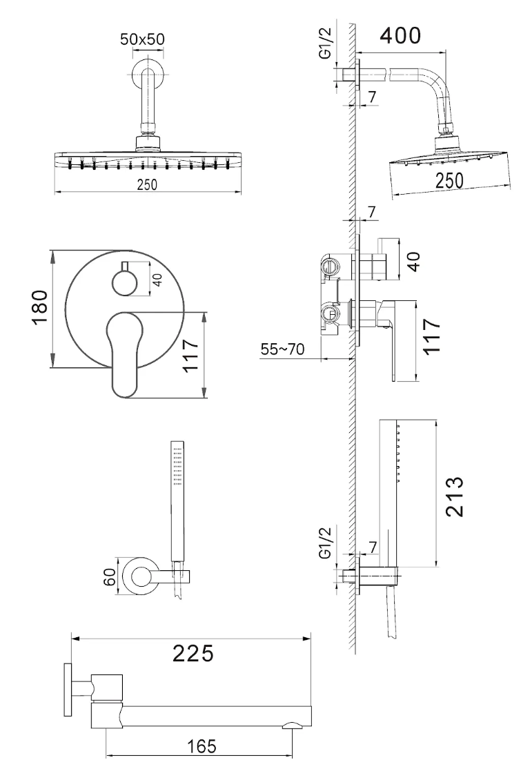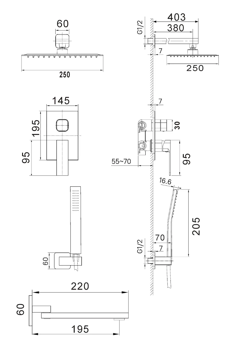 Душевая система встраиваемая, чёрный D-lin D10A30-A