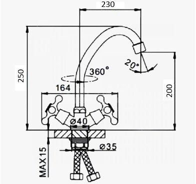 Смеситель для кухни с поворотным изливом, хром, D-Lin D153824-E