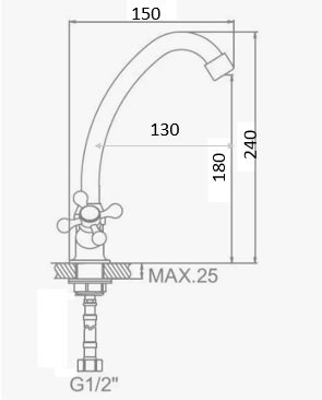 Смеситель для кухни с поворотным изливом, хром, D-Lin D153824-G
