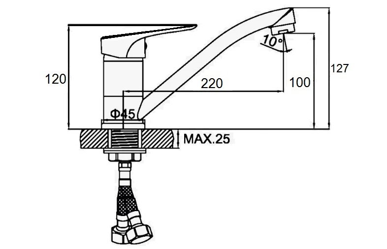 Смеситель для кухни с гибким поворотным изливом, хром, D-Lin D150302-T